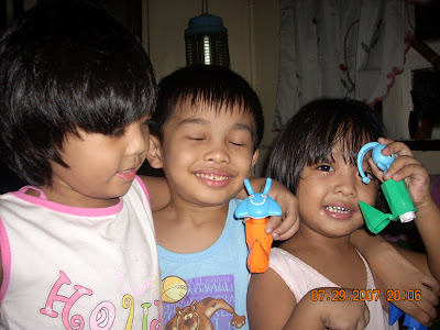 After the mass, Lolo Ben bought the kids a Happy Meal from McDonalds. And guess what's the free toy now? Pokemon Stuff! Pens and Pokeballs. More than that, they are also designed to release a round thing with pointed tips that makes it spin, sort of like an innovative version of a "TOP", a kind of toy we used to have back in our time. The kids surely had a fun time playing with them and trying to outdo each other's pokemon --- the last to stop spinning wins the battle!